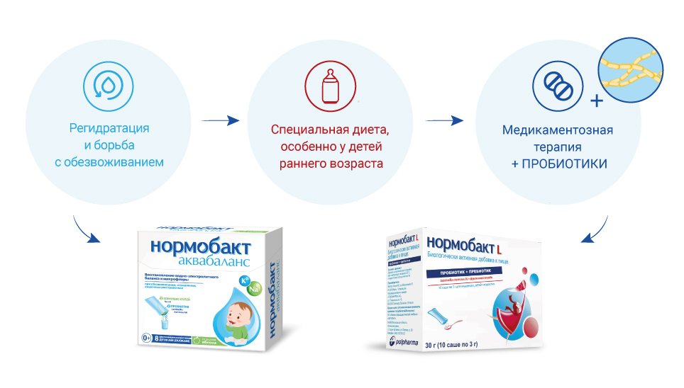 Линейка НОРМОБАКТ — продукты для регидрации и восстановления микровлоры в период гастроэнтерита и диареи любого происхождения